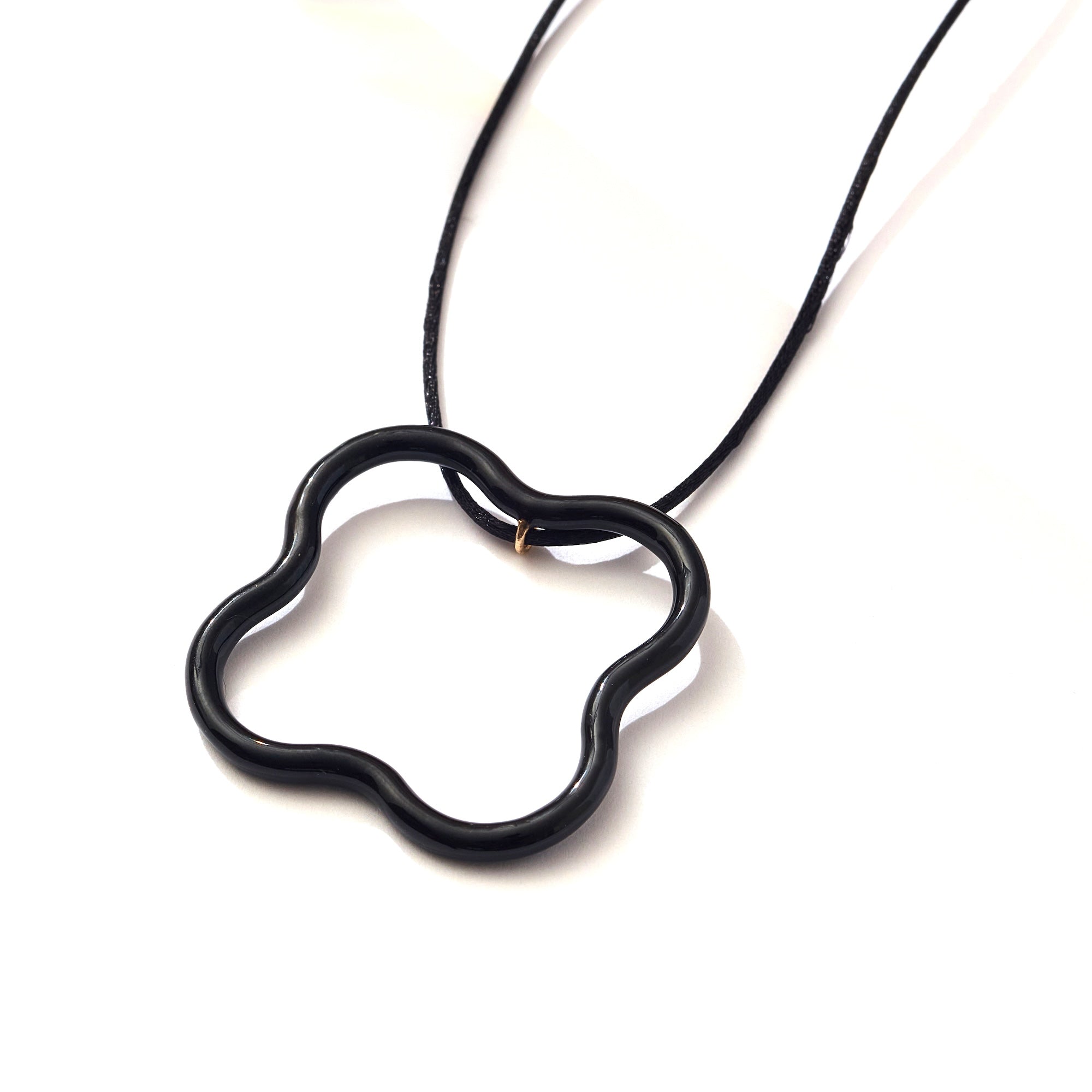 Fresh as a daisy and chic A.F. This pendant will be the focal point of any outfit. Great on a white blouse or a black sweater. The wire is 3mm and it is 1.75" across at the widest point. It comes with 3 silk cords: black, navy, brown, and the handsome grey velvet ribbon shown so it will always coordinate perfectly with your outfit. A small 1/2 ring on the back attaches the cords.