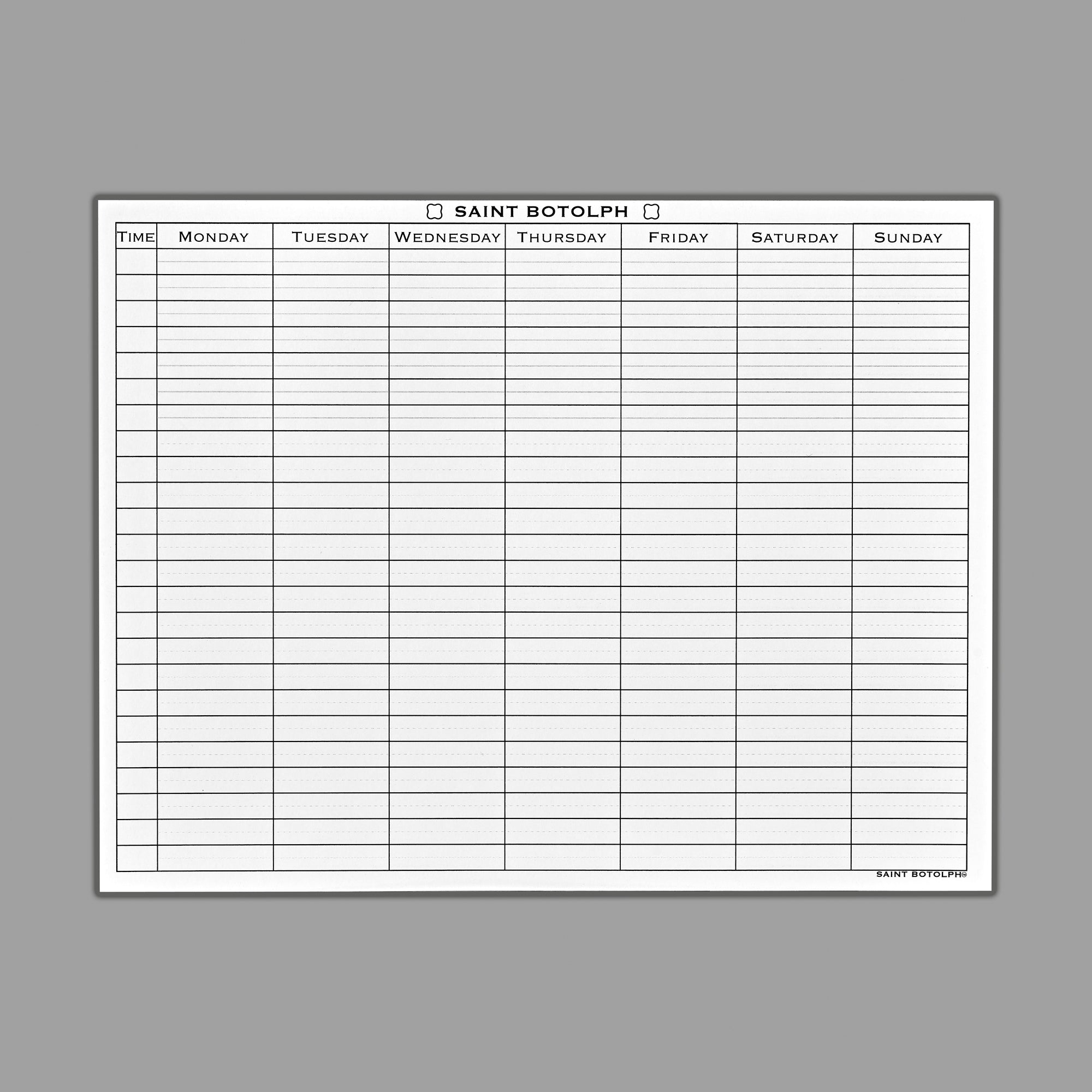 Designed for the truly busy: 24 rows for each hour of the day, each divided in two for 1/2 hour starts. Plan your whole 24 hours and see where all your time is spent; make sure it aligns with your goals and values. You add the hours of the day that fit your schedule. Redo each season when your schedule changes.